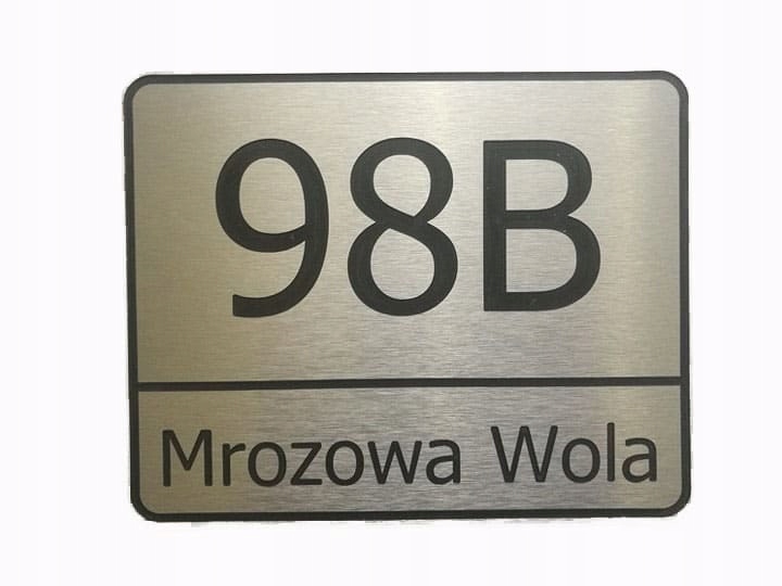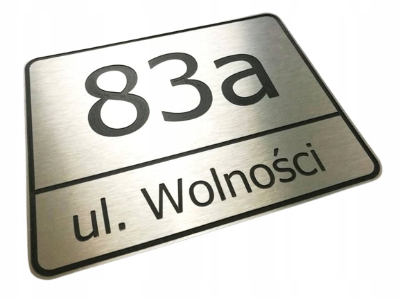 Tablica adresowa wykonana z laminatu grawerskiego o wymiarach 25 x 20 cm. Powierzchnia tablicy w kolorze aluminium szczotkowanego! Adres grawerowany jest metodą laserową, co bezpośrednio ma wpływ na jakość i precyzję wykonania.